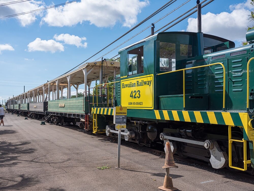 11:00 レトロなさとうきび列車でオアフ島西方面へ出発(車内は日本語ガイド付き)