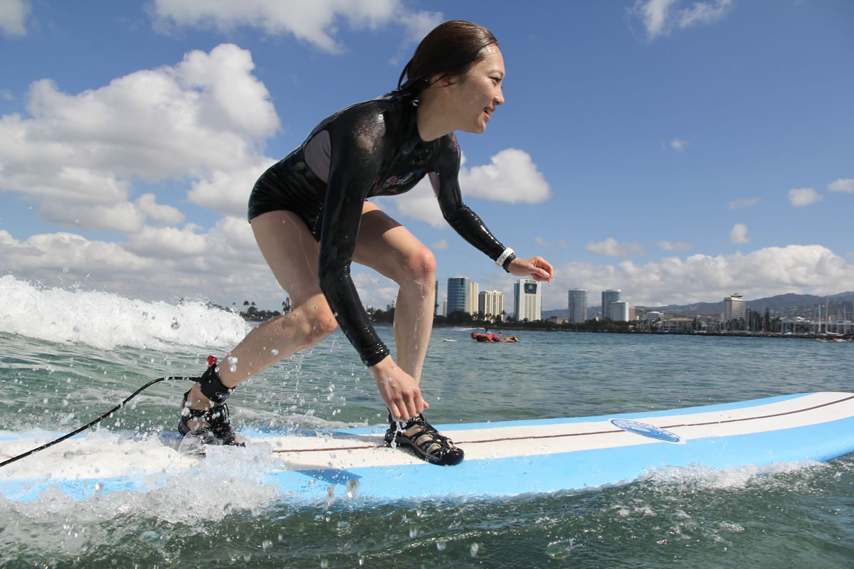 ワイキキでサーフィンデビュー! プロのサーファーが当日のベストサーフスポットで丁寧にレッスン!