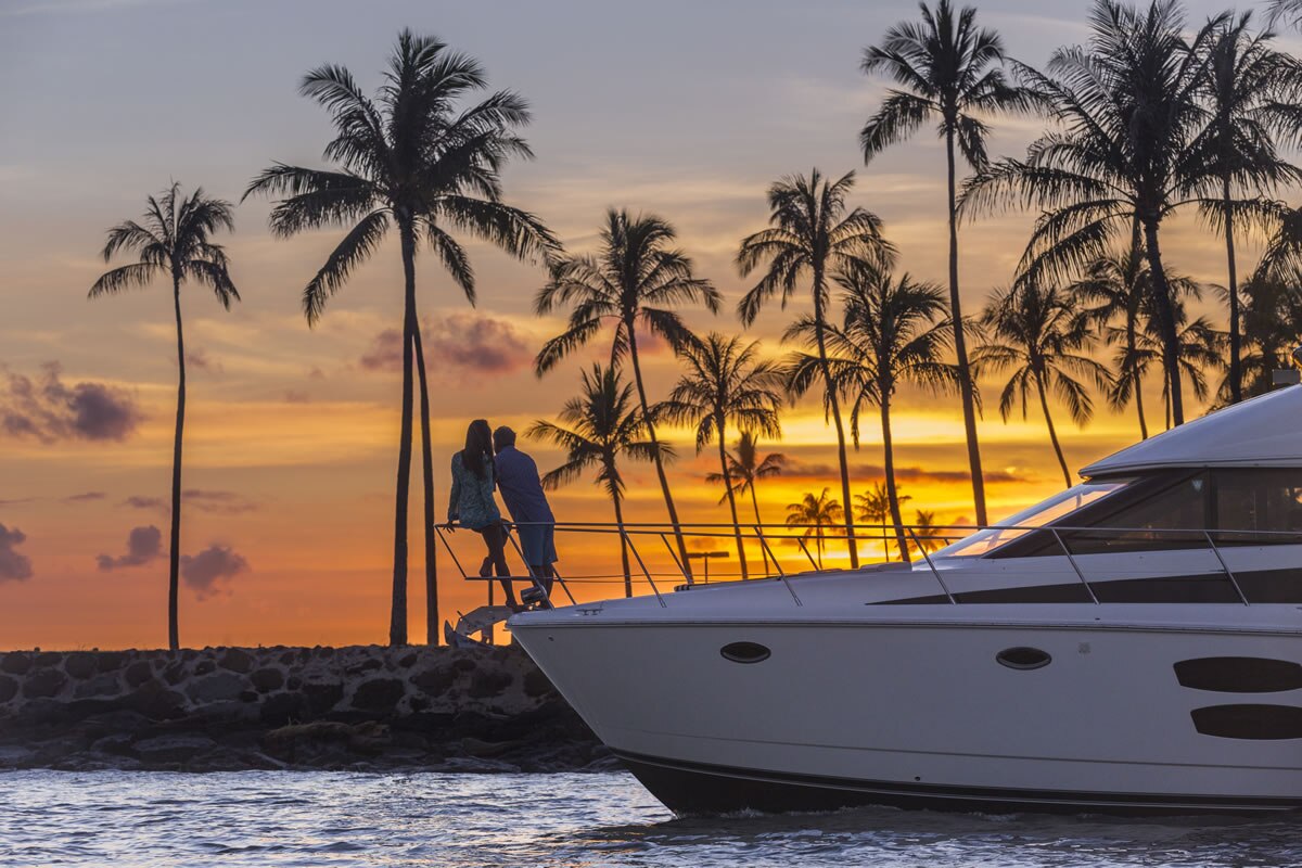 大切な方とプライベートな空間でゆっくりと過ごしたいという方には、サンセットクルーズがおススメ。太平洋に沈みゆくハワイの雄大なサンセットを海上から見れるのは一生の思い出になります。そして日没後はワイキキの100万ドルの夜景をお楽しみいただけます。