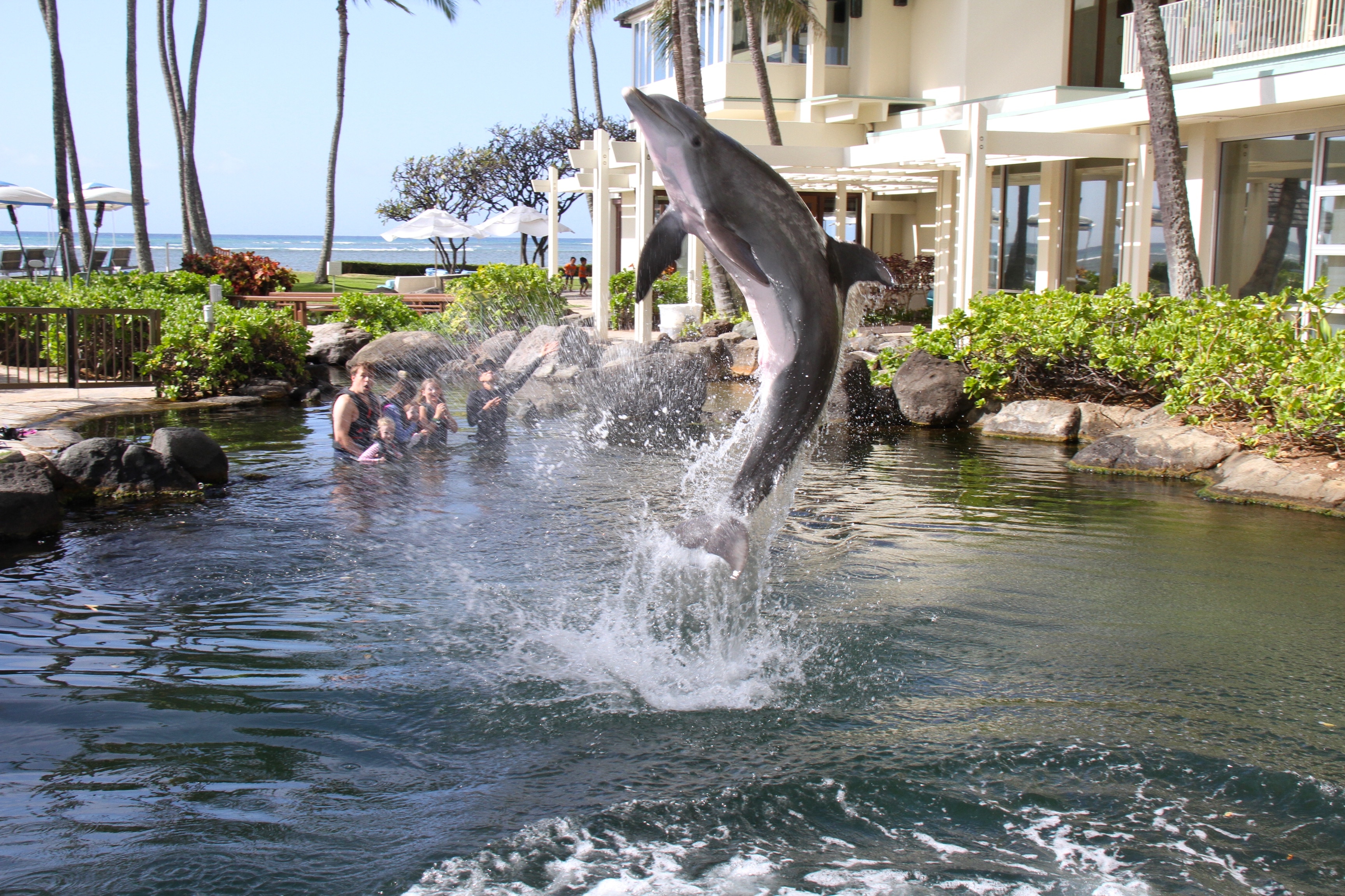 カハラリゾート&ホテル内の2,400平方メートルのラグーンには、大西洋バンドウイルカがいます。ここではイルカ達とラグーンの中で直に触れ合うことができます。美しい環境でのイルカ達との触れ合いは、きっと忘れられない貴重な思い出となるでしょう。