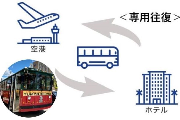 ラクラク・安心・安全の混乗往復送迎と赤いシャトルバスがセットでご購入いただけます!空港⇔ホテル間の送迎と、現地での移動手段「赤いシャトルバス券」がセットになったプラン!