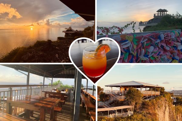 グアムの国旗にも描かれているグアムの名所で絶景スポット「恋人岬」で美しいサンセットを満喫!大パノラマを堪能後、施設内にある「ゆうやけテラス(Terraza at Dos Amantes)」でドリンクで乾杯!