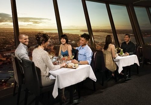 南半球一の高さを誇るタワーからの景色は最高!オークランド市内中心部・バイアダクトハーバー・ハーバーブリッジ・デボンポート・ランギトト島・マウント・イーデンなど近郊の見どころを眺めながらお食事が楽しめます。
