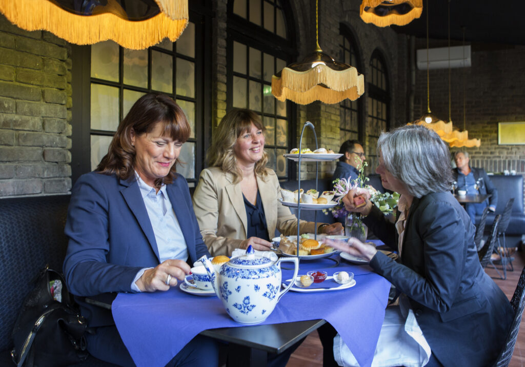 館内の素晴らしいお庭(19世紀末のロイヤルデルフト・建材タイル製)を眺めながら、デルフトブルー・アフタヌーンティーで一息。