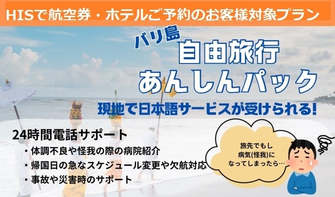 HISのバリ島行き航空券、ホテル、航空券+ホテルをご購入のお客様限定で現地日本語サポートが受けられるプランが登場!